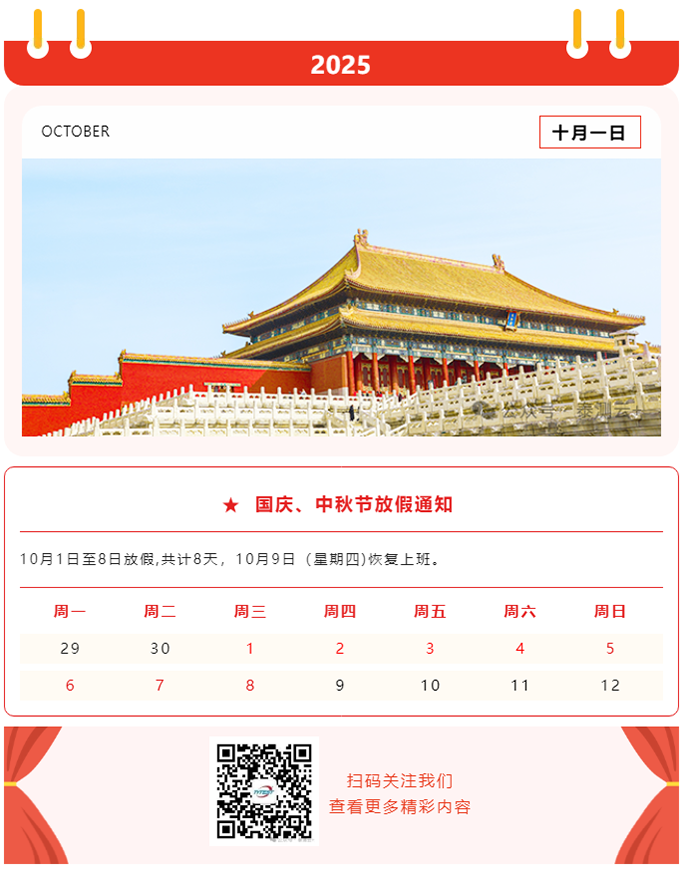 成都泰测科技有限公司2025年国庆、中秋节放假通知
