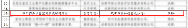 近日,四川省经济和信息化厅官网发布2022年度四川省数字经济典型应用场景入选名单,成都泰测科技有限公司的“城市内涝预警监测系统解决方案”成功入选优秀数字产品、技术和解决方案。