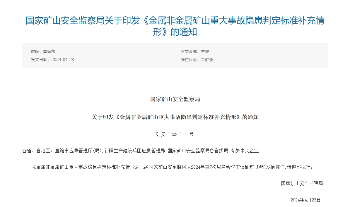 金属非金属矿山重大事故隐患判定标准补充情形