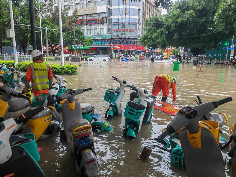 受暴雨影响,南宁市部分城区发生内涝,一些低洼地带积水较深。一些地方积水深度为0.5米左右,不少电动自行车侧倒在马路两边,有数辆小汽车熄火停在路中间。19日凌晨3时左右突降暴雨,大量雨水灌入地势较低的地下车库,一些来不及转移的车辆被淹。