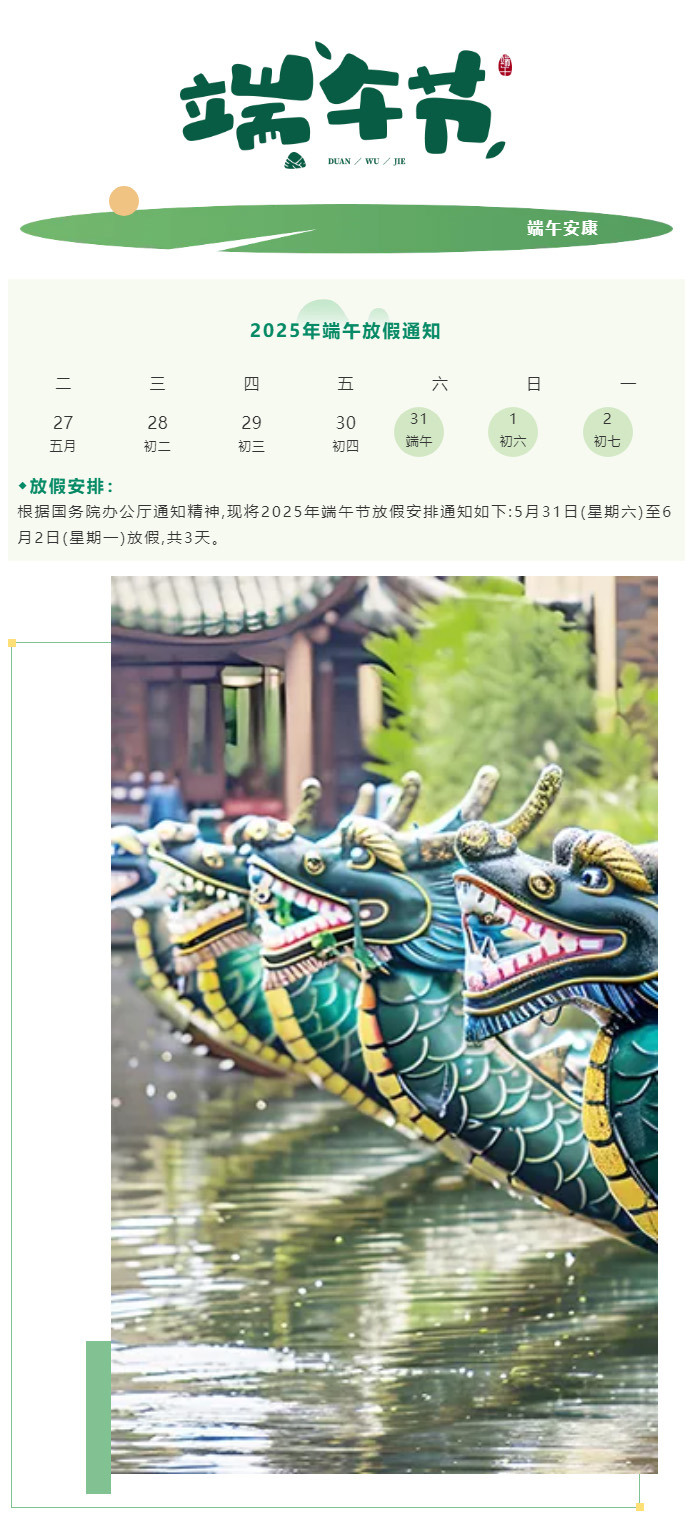 端午安排,2025年端午节放假安排通知